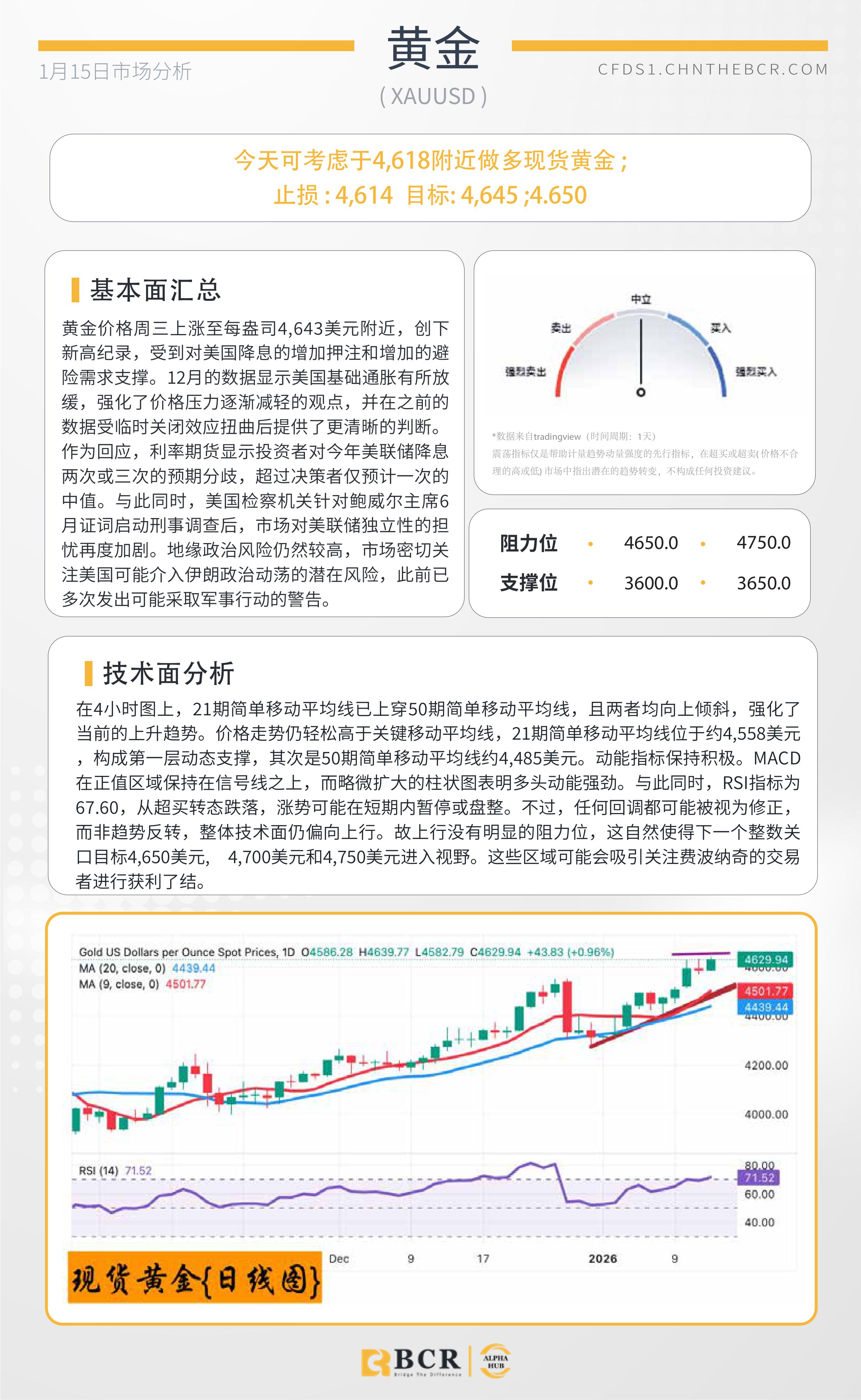 BCR每日早评及分析-2026年1月15日